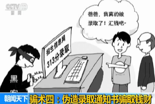 央视网消息:高考结束了,现在考生和家长最惦记的,就是查询分数和填报志愿。而每年这个时候,都有不少骗子抓住这个时机试图骗取钱财。下面,我们就来曝光诈骗分子常用的伎俩,考生和家长可以提前防范。