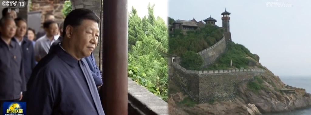 13日上午,习近平冒雨来到蓬莱市,这里曾经是古代海上丝绸之路的一个起点。他登上蓬莱阁主阁,了解古代海上丝绸之路情况,听取明代爱国将领戚继光操练水师、保卫海防的史料介绍。从《新闻联播》画面可见,旁边树木被海风吹着剧烈摆动,但总书记仍旧听得很认真,丝毫没受影响。