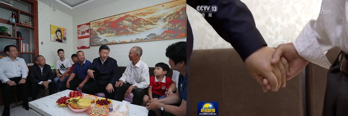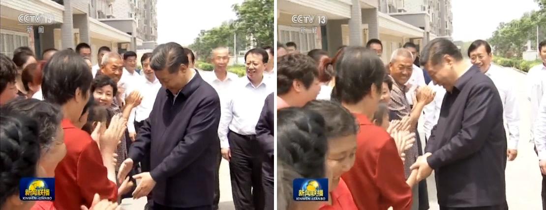 习近平十分牵挂村民的居住和生活状况,他在济南市章丘区双山街道三涧溪村考察时,走进村民赵顺利家,同一家人围坐一起拉家常,问他们收入怎么样,搬迁花了多少钱,生活上还有哪些困难。赵顺利拉着总书记的手激动地说,这些年老百姓的生活可好了,致富路越走越宽,日子越过越红火,全靠党的政策好。仅这个拉手的画面,《新闻联播》就播出了12秒。