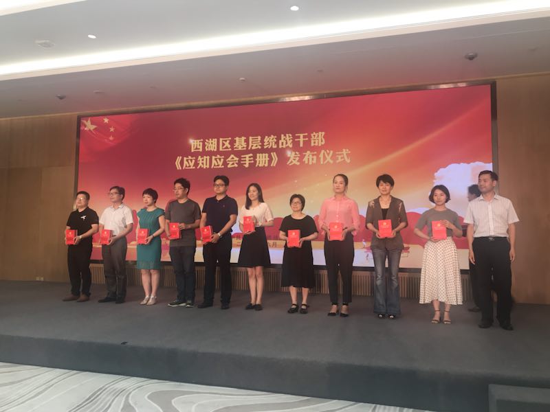 基层统战干部《应知应会手册》是杭州市西湖区统战“能力提升年”的重要载体,汇集了统战各条线的相关政策和工作方式方法,是一本基层统战工作的工具书。发布式上,西湖区委统战部向11个镇街统战干部代表,各民主党派、基层商会、统战团体等代表赠送《应知应会手册》。同时,西湖区委统战部聘请西湖区政协委员李宏、姚冰等5位专家成为西湖统一战线首批工作顾问。