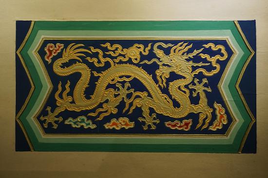 在展览二层的彩画展览区,单士元先生请画工张连卿、何文奎带领弟子在1956-1966年按照彩画现状临摹制作的彩画小样,当时一共制作了360幅,展览挑选了其中最具代表性的展示给观众。