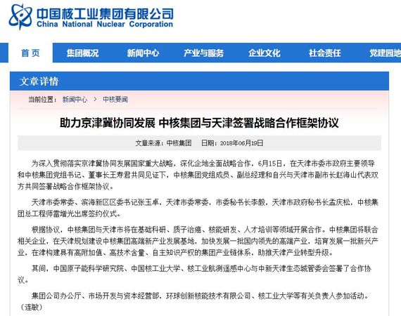 半年后新校区建设又有实质性进展。上周五,中核集团与天津市政府签署战略协议,其中披露中核集团将在天津投资建设中国核工业大学。这意味着,中国首所“国字头”核工业大学将落户天津。值得一提的是,同一天,中国核工业大学还与中新天津生态城管委会签署了合作协议。
