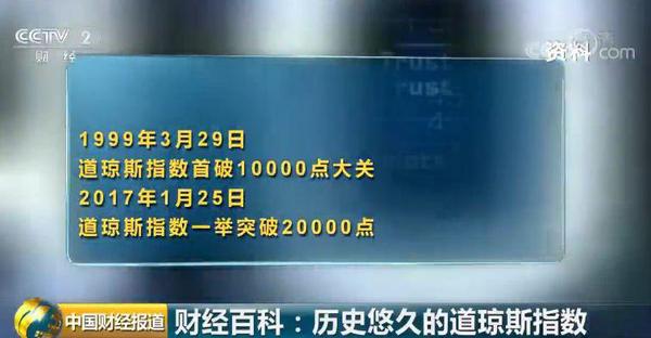 1999年3月29日,道琼斯指数首破10000点大关。2017年1月25日,它一举突破20000点。