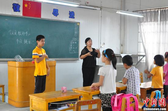 资料图:盲聋哑学校的学生为老师献上节日的祝福。中新社发 韦敏 摄