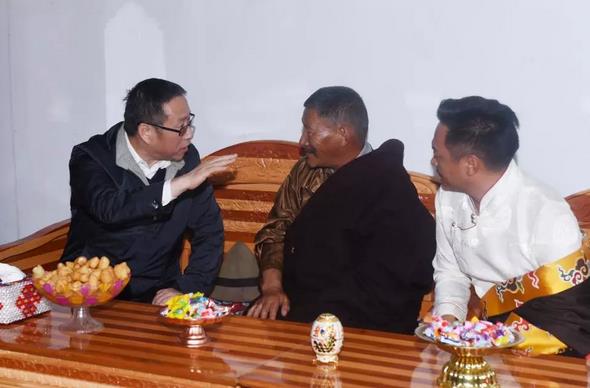 郑建邦常务副主席走访玛多县河源新村,与老村长嘎保亲切交谈