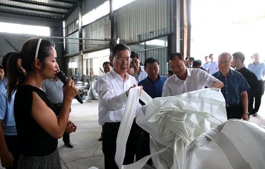 随后,调研组前往靖西市鑫晟茧丝绸科技有限公司和信发塑编有限公司,实地考察桑蚕产业带动贫困户脱贫情况和就业扶贫车间带动贫困户劳动力就业情况。在蚕茧收购车间,调研组询问了蚕茧收购流程、农户收入、公司发展规划等基本情况,并对“公司+村集体经济+农户”的产业扶贫模式进行了详细考察。在信发塑编有限公司的就业扶贫车间,调研组实地了解了建档立卡贫困家庭劳动力就近就地实现灵活就业和居家就业的情况。