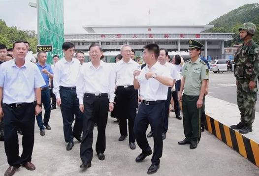 离开大莫村,已近中午,郝明金一行又马不停蹄的赶往龙邦口岸、龙邦边民互市贸易区和万生隆国际商贸物流中心,考察沿边开发建设、口岸通关管理和边贸扶贫情况。郝明金仔细了解了靖西市充分发挥口岸、边贸等优势,通过搞活边贸有效带动脱贫的情况,他强调,打赢边境地区脱贫攻坚战关系国土安全和国家形象,要认真贯彻落实国家关于边境地区发展与守边固边紧密结合的决策部署,把边境一线脱贫攻坚作为一项重要政治任务、重要的民生工程抓紧抓好。