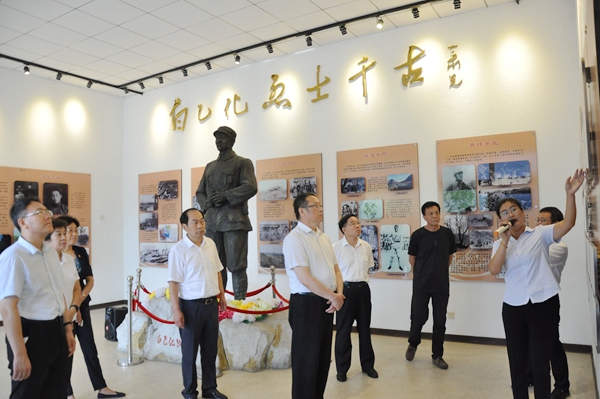 7月7日,出席调研活动的一行人员来到位于密云石城镇的白乙化烈士纪念馆和位于古北口镇正在重新修建的古北口长城抗战纪念馆进行参观考察,并在白乙化烈士纪念碑前和古北口战役阵亡将士公墓前举行了隆重的纪念仪式。郑建邦、傅惠民、周开让、王稳东代表民革中央、中共北京市委统战部、民革北京市委和密云区政协向抗战英烈敬献花圈。
