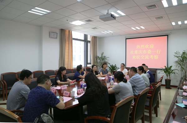 7月10日至11日,九三学社重庆市委专职副主委杨开奎率各区级社组织专职副主委及社市委机关部分同志并邀请中共重庆市委统战部相关处室同志一行来肥考察交流。7月10日下午杨开奎一行走访了社省委机关,并就社务工作的开展与社省委机关各部门负责同志进行了座谈。座谈会由社省委专职副主委张腊梅主持,社省委秘书长卢明霞介绍了相关工作。