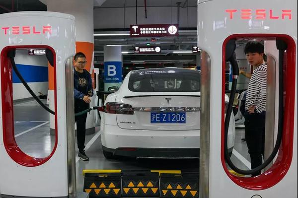 ▲特斯拉已同上海政府达成协议,在上海建造它的第一家海外工厂。图为上海一家购物中心内的特斯拉充电站。(盖帝图像)