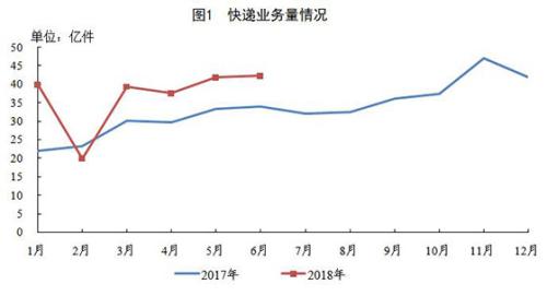 6月份,全国快递服务企业业务量完成42.3亿件,同比增长24.2%;业务收入完成508.6亿元,同比增长21.1%。
