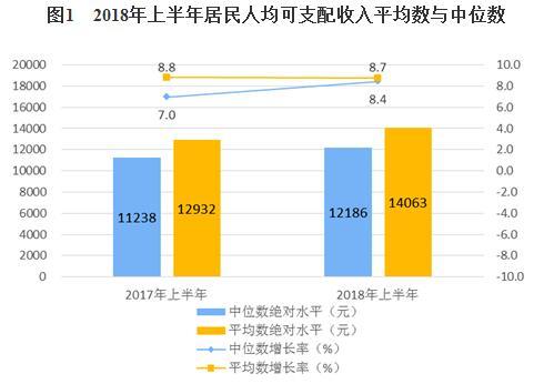 上半年,全国居民人均可支配收入中位数12186元,增长8.4%,中位数是平均数的86.7%。其中,城镇居民人均可支配收入中位数18048元,增长7.4%,是平均数的91.3%;农村居民人均可支配收入中位数6045元,增长8.7%,是平均数的84.6%。