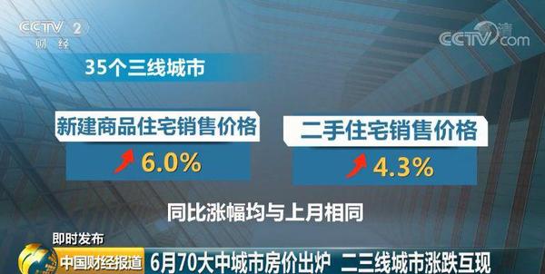 35个三线城市新建商品住宅和二手住宅销售价格分别上涨6.0%和4.3%,同比涨幅均与上月相同。