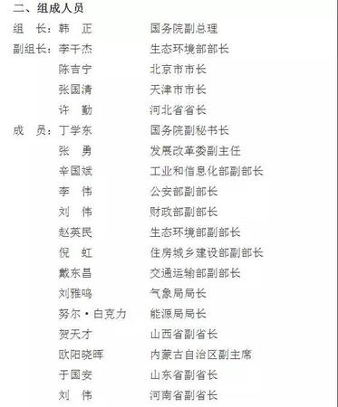 昨天(11日),国务院办公厅发布通知,将“京津冀及周边地区大气污染防治协作小组”调整为“京津冀及周边地区大气污染防治领导小组”,韩正担任组长。