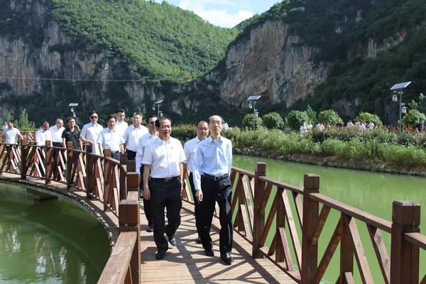 置身枪杆岩村的木质栈道,近观秀水,远眺青山,有虫鸣,有花香,调研组成员忍不住感叹:“纳雍真美!”枪杆岩村因有一柱擎天枪杆岩独峰而得名,不仅风光秀美,还是纳雍有名的红色村,留有“红军井”“红军屋”“红九军团战斗遗址”等。目前,该村正积极打造乡村文旅项目,把绿水青山变成金山银山。万鄂湘表示,守住了绿水青山,也在用新发展理念引来金山银山。希望进一步做好规划,提升内涵,加大宣传,同时欢迎更多民革组织和党员参与进来,到这里开展社会实践、红色教育、交流写生等。