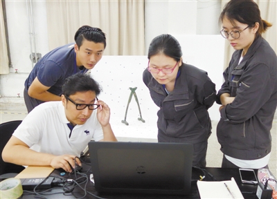 韩冬(前排左一)与团队成员一起查看测量数据天津大学供图