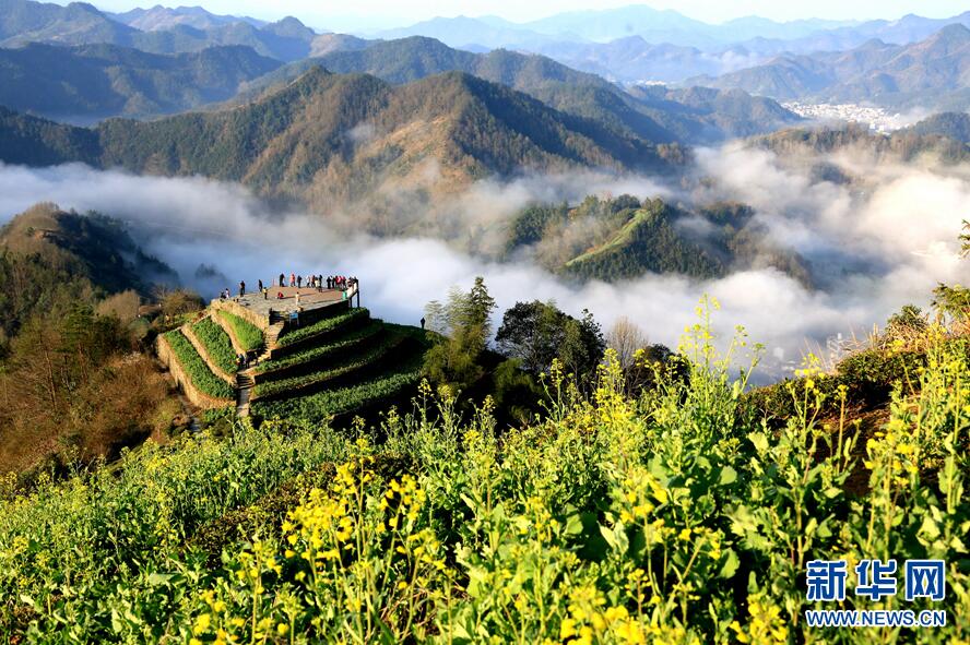 资料图 众多游客在安徽省黄山市歙县石潭村赏花 新华网发(潘成 摄)