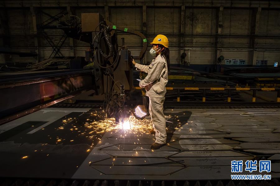 工人在南通中远海运川崎船舶工程有限公司智能化车间作业(7月6日摄)。小到牙刷、电池,大到汽车、轮船、大飞机……改革开放40年,中国制造坚持开拓,苦练内功,在与世界贸易伙伴携手共进中,逐渐融入全球贸易体系。新华社记者 沈伯韩 摄