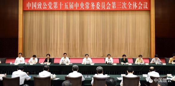 中国致公党第十五届中央常务委员会第三次全体会议7月23日在沈阳召开?;嵋橹魈馐茄跋敖阶苁榧枪赜谥泄厣滦驼持贫冉ㄉ栌爰忧亢透慕嗣裾ぷ鞯闹匾枷?,提升致公党的履职能力,加强自身建设?;嵋榛刮贫赡〉木蒙缁岱⒄菇ㄑ韵撞?。全国政协副主席、致公党中央主席万钢出席会议并作重要讲话。