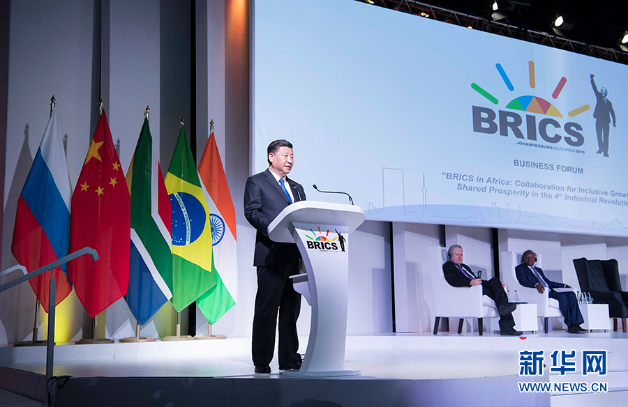 7月25日,国家主席习近平应邀出席在南非约翰内斯堡举行的金砖国家工商论坛,并发表题为《顺应时代潮流 实现共同发展》的重要讲话。 新华社记者 李涛 摄