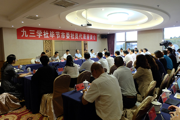 座谈会上,九三学社毕节市委主委周正军汇报了近年来九三学社毕节市委工作情况和取得的成绩,杨大平、李景林、张权、宋毅、范光留、管毓军、胡军、李清超等先后发言,就增强基层组织发展、社员能力提升、对口威宁帮扶、助力脱贫攻坚等问题提出了建议。
