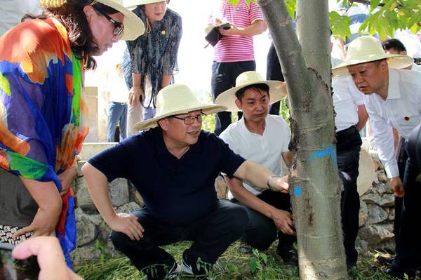 万钢一行首先来到毕节市七星关区朱昌镇,对“致公党毕节农业科技帮扶园”进行调研。万钢深入田间地头,弯腰进入果林深处,仔细查看果树生长情况,听取园区致公党农业专家和负责人关于项目在绿色除虫、带动就业和农民增收方面的情况介绍。万钢希望园区继续做好产学研结合,激发农民参与积极性,拓展销售渠道,帮助农户获得更加稳定的收入。万钢指出,毕节要在打赢脱贫攻坚战的基础上,着眼乡村振兴长远战略,真正实现可持续发展。为此园区要在科技帮扶过程中,进一步提升帮扶层次:要积极创新,有效运用“田园众包”等经济模式,吸引更多农户加盟;进一步做好农产品加工,促进农村三产融合,带动农民增收。调研结束后,万钢鼓励大家继续努力,在下一步工作中取得更大的收获——“要贴好二维码,到时候我们要来订购”,万钢风趣地说。
