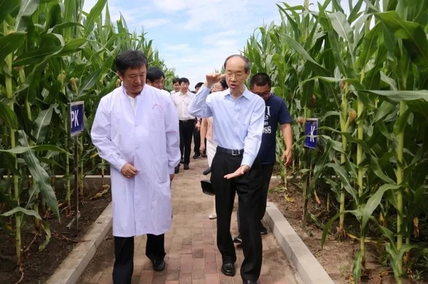 8月1日上午,民革中央调研组一行在黑龙江省现代农业示范区管理中心调研。图为调研组走进试验田,了解不同施肥情况下玉米的生长情况。