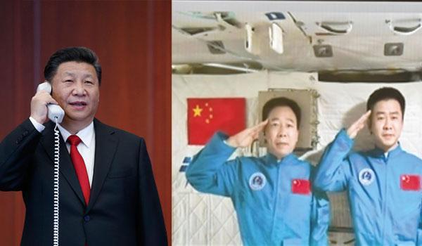 2016年11月9日,习近平来到中国载人航天工程指挥中心,同正在天宫二号执行任务的神舟十一号航天员景海鹏、陈冬亲切通话。来源:新华社