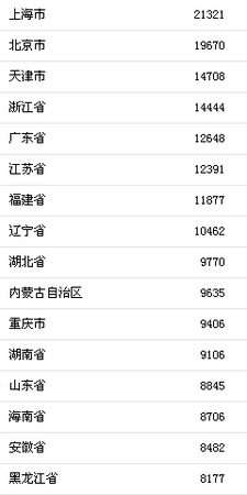 上海人均消费支出全国第一
