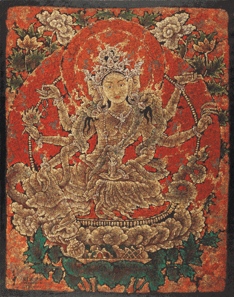 藏族传统的釉陶纹饰及门面建筑的格局,民间单纯明快的线描重彩兼施西洋古典的特殊手法,