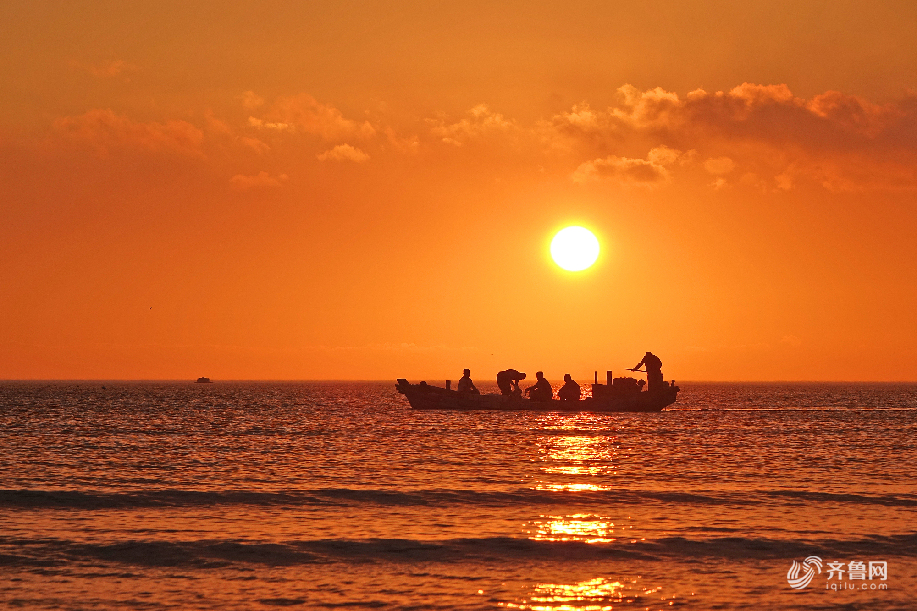 资料图 山东烟台海滨,渔民伴着朝阳在海上劳作 齐鲁网