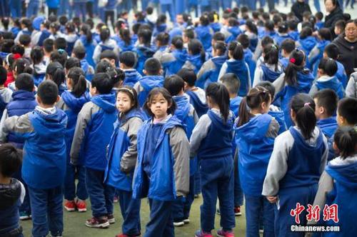 资料图:郑州一小学的学生们参加开学典礼。 张云 摄