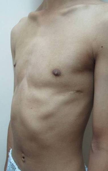 关于漏斗胸的发病机理有很多种说法,其中有胸廓各部位不协调的发育、遗传因素等等各类原因。据陈刚教授介绍,漏斗胸有较高的遗传相关性,家中亲属患漏斗胸的,则孩子患漏斗胸概率大,但不代表漏斗胸一定会遗传,也有一部分患者没有任何家族遗传的迹象。