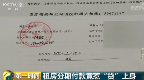 央视财经记者在调查中发现,和陈小姐有一样遭遇的人还有很多,大家都是不明就里地被办理了租房贷款。 如果不签租房贷款,后果可能是租房者被强行清退。