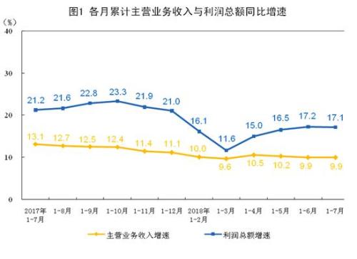 中新网8月27日电 国家统计局8月27日发布的工业企业财务数据显示,2018年1-7月份,全国规模以上工业企业利润同比增长17.1%,增速比1-6月份低0.1个百分点,其中,7月份利润增长16.2%。国家统计局工业司何平博士对此解读称,总体看,随着供给侧结构性改革深入推进,工业利润持续快速增长。