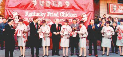 肯德基中国总经理黄进栓对本报记者介绍说,适逢改革开放初期,《国务院关于鼓励外商投资的规定》等一系列政策出台,外资企业受到极大的欢迎和礼遇。当时,北京市定位于向国际大都市发展,市委市政府考虑引进“美国风味小吃”,促成了肯德基进入中国。而处在最繁华地段的前门店的巨大成功,则对后来在中国市场的拓展产生了示范效应。