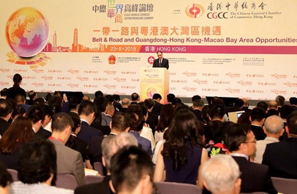 本次论坛以“一带一路与粤港澳大湾区机遇”为主题,云集了来自内地及香港政府高层官员,全球华商、香港专业服务界精英、不同产业范畴的海内外专家学者及工商翘楚等近千名嘉宾,共同探讨“一带一路”和“粤港澳大湾区”发展前景及香港角色,举办了多场专题分论坛。辜胜阻发表题为《让科创走廊成为粤港澳大湾区发展的重大引擎》的开幕演讲。