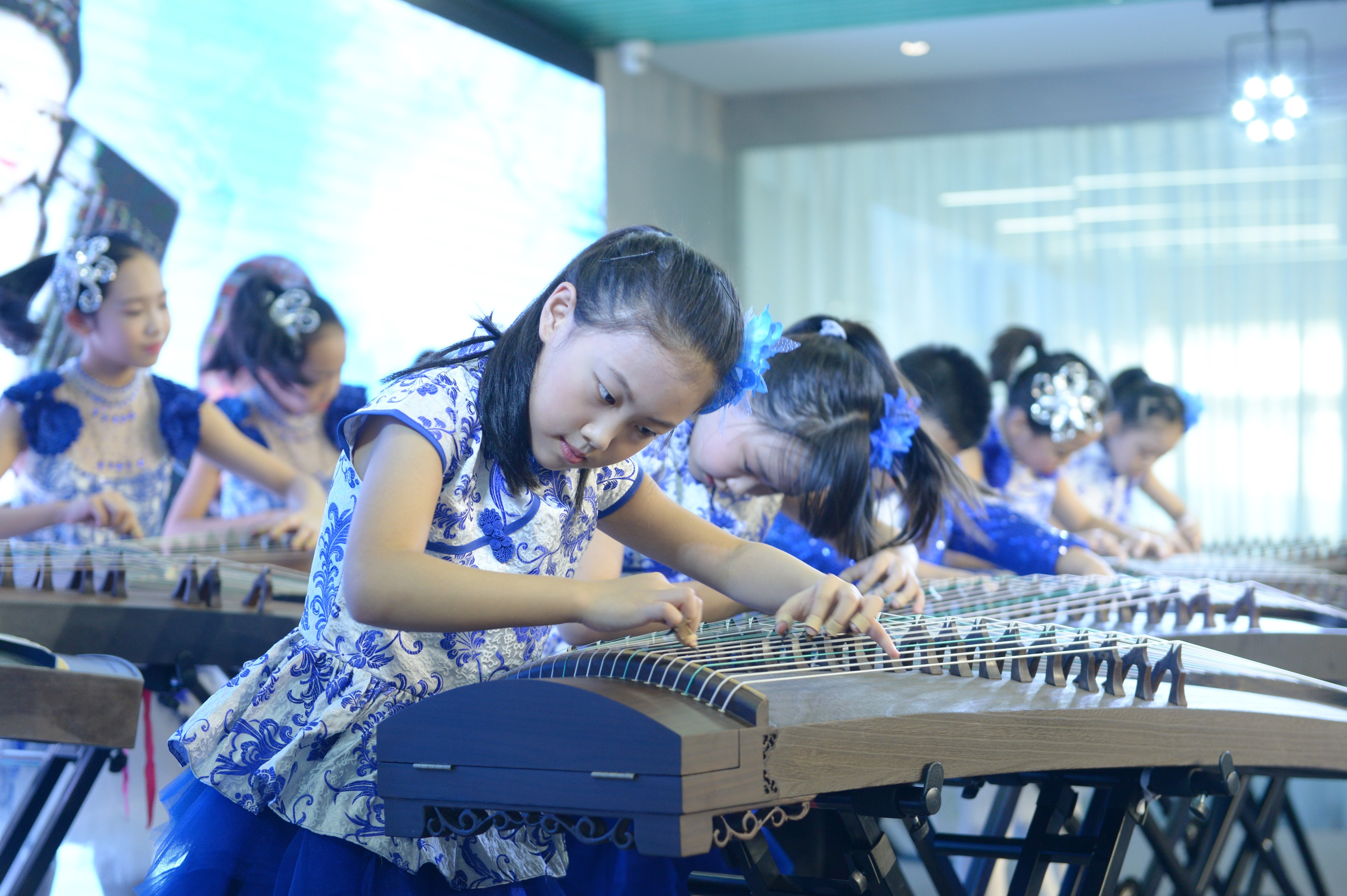 吴茜和主创团队以及开场演奏古筝的小学生集体进行了“文化传承宣誓”