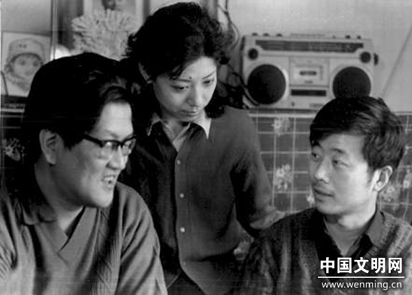 关牧村和施光南(左一)、韩伟(右一)在一起。资料照片由关牧村提供