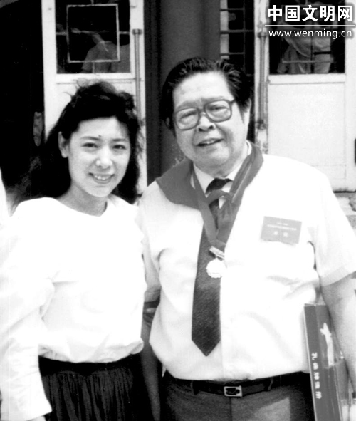 关牧村和著名音乐教育家沈湘老师。资料照片由关牧村提供