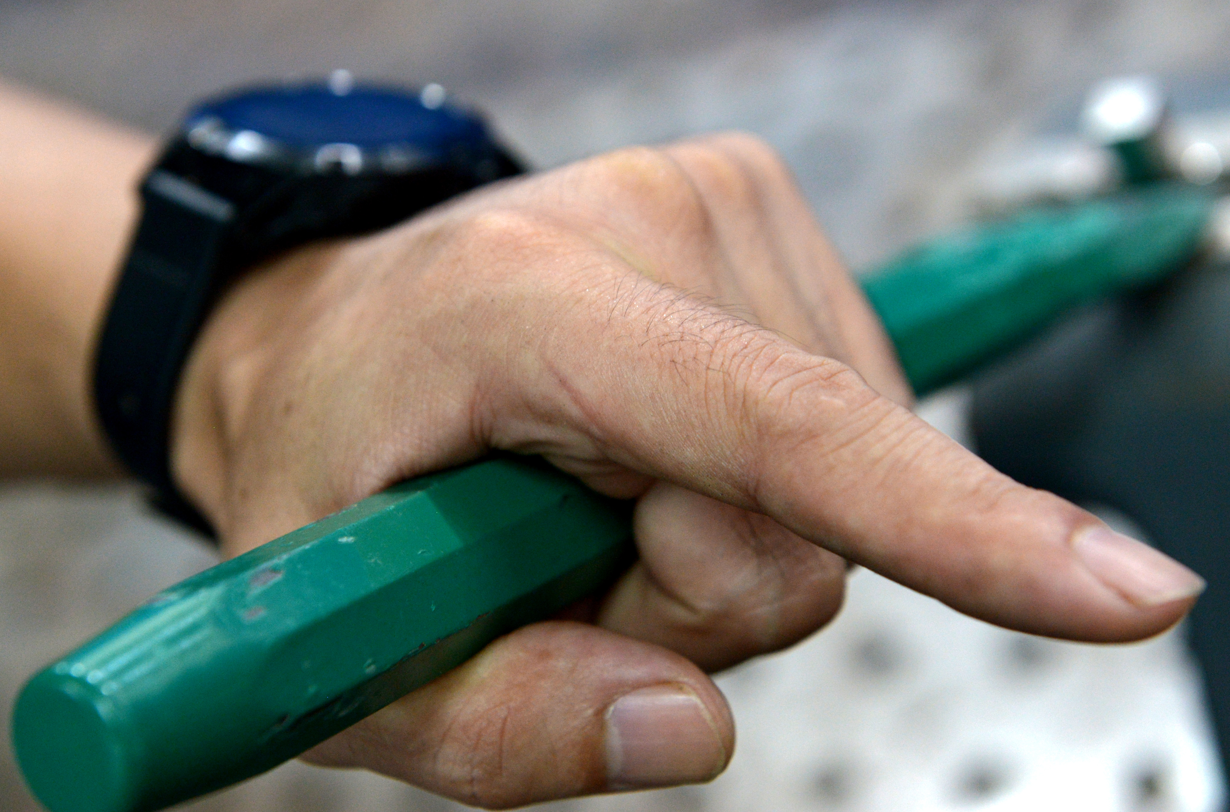初中毕业后,学习成绩优异的他本可以考入唐山市的重点高中,从小就有铁路工人情结的张雪松并没有顾及父母的反对,毅然选择上技校,如愿成为唐山机车车辆厂技工学校的一名学生。然而,现实并没有理想“丰满”。每一个行当都得从基本功练起,为了练习钳工的基本功,由于掌握不好打手锤的力量和准确性,手指经常被铁锤砸到流血。“这是记忆最深的一件事,也让我明白了万事开头难的道理?!闭叛┧梢槐吒嫠呒钦?一边用右手摸着左手食指上留下的疤痕。