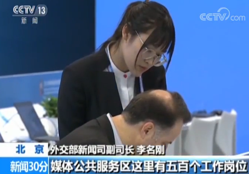 外交部新闻司副司长 李名刚:媒体公共服务区里有五百个工作岗位,为了方便来自非洲的记者,所以在操作的系统方面我们也使用了中、英、法三种语言。