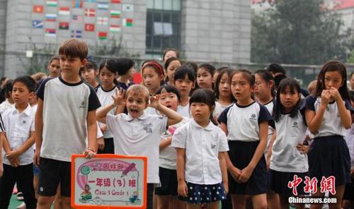 资料图:小学一年级新生列队。中新社记者 贾天勇 摄