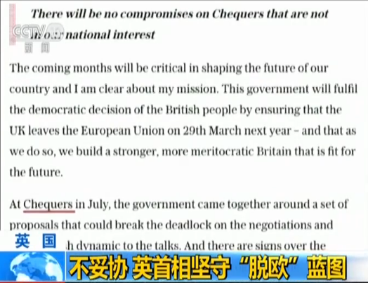 另一篇文章中,特雷莎·梅写道:“我不会就‘契克斯计划’作让步,那不符合我们的国家利益。今后几个月,对我们国家的将来至关重要,我清楚自己的使命?!?/p>