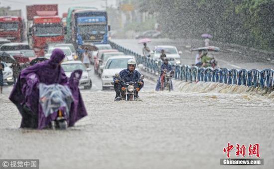 资料图:民众在暴雨中出行。李想摄 图片来源:视觉中国