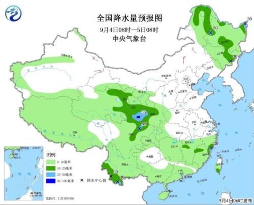 图1 全国降水量预报图(9月4日08时-5日08时)