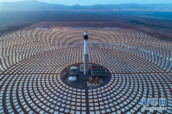 这是2018年6月7日在摩洛哥瓦尔扎扎特拍摄的努奥光热电站项目三期工程(航拍照片)。从2015年起,中国电建集团下属的山东电建三公司在瓦尔扎扎特承建努奥光热电站项目二期和三期工程。努奥光热电站项目是目前全球规模最大的光热电站项目。二期工程槽式光热电站现已进入商业运行,三期塔式光热电站也于近日顺利实现首次并网目标。待项目完全建成后,努奥光热电站将为超过100万的摩洛哥家庭提供清洁能源,还可以把富余的电能出口到欧洲。 新华社发/山东电建三公司供图