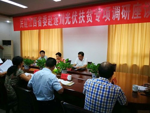 调研组实地考察了遂川县枚江镇光伏扶贫产业基地、枚溪、高升、东江、豪溪村光伏扶贫扩面工程及吉安县横江镇良枧村光伏扶贫基地,并分别召开调研座谈会,向财政、发改、国土、电力等有关部门深入了解光伏扶贫项目建设情况、政策变化情况、财政资金到位情况,并就光伏扶贫产业后续推进工作及存在的问题进行了交流探讨。