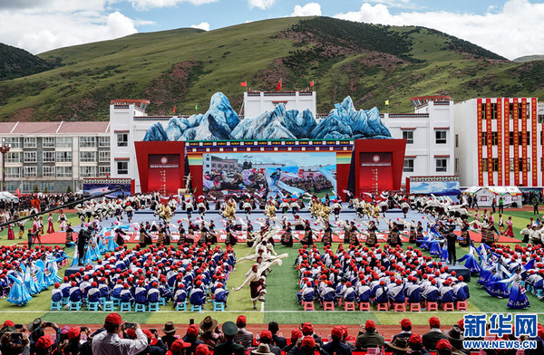 一曲《您是芒康的孩子》唱出了芒康人民对广大援藏干部舍小家为大家奉献精神的无限感激。新华网 张免 摄