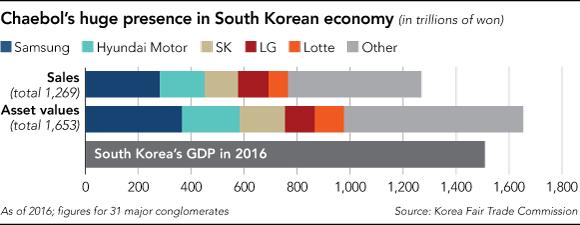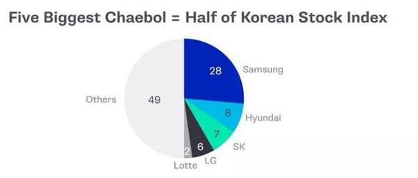 据悉,韩国超过50%的GDP和90%的银行贷款都属于10大财团。